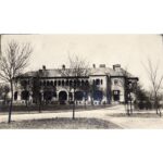 A black-and-white photograph showing the main entrance of the French embassy or legation in the diplomatic quarter in Beijing (Dongjiaominxiang 東交民巷). Between 1861 and 1959, the latter was established in the Inner City area (Neicheng 内城), east of present-day Tiananmen Square (Tiananmen Guangchang 天安門廣場), and south of the Forbidden City (Gugong 故宫 or Zijincheng 紫禁城). The areas of each legation were surrounded by a wall. In the legations, the foreign powers built various infrastructures – from churches, hospitals, barracks, post offices, and schools to banks and horse racing tracks. Access to the legation was possible at certain points through a designated portal and a guardhouse over which the national flag was hoisted.